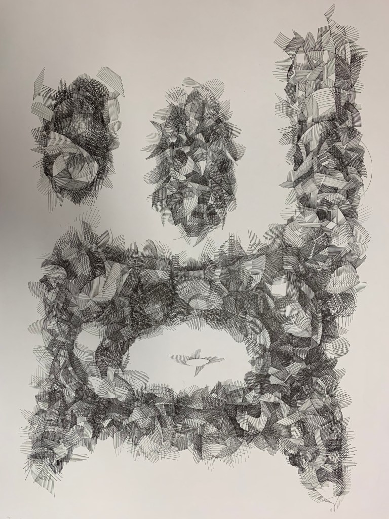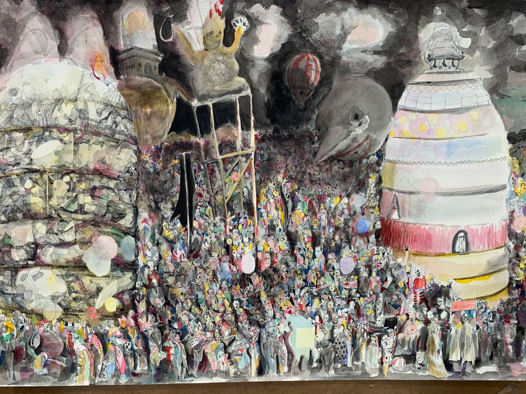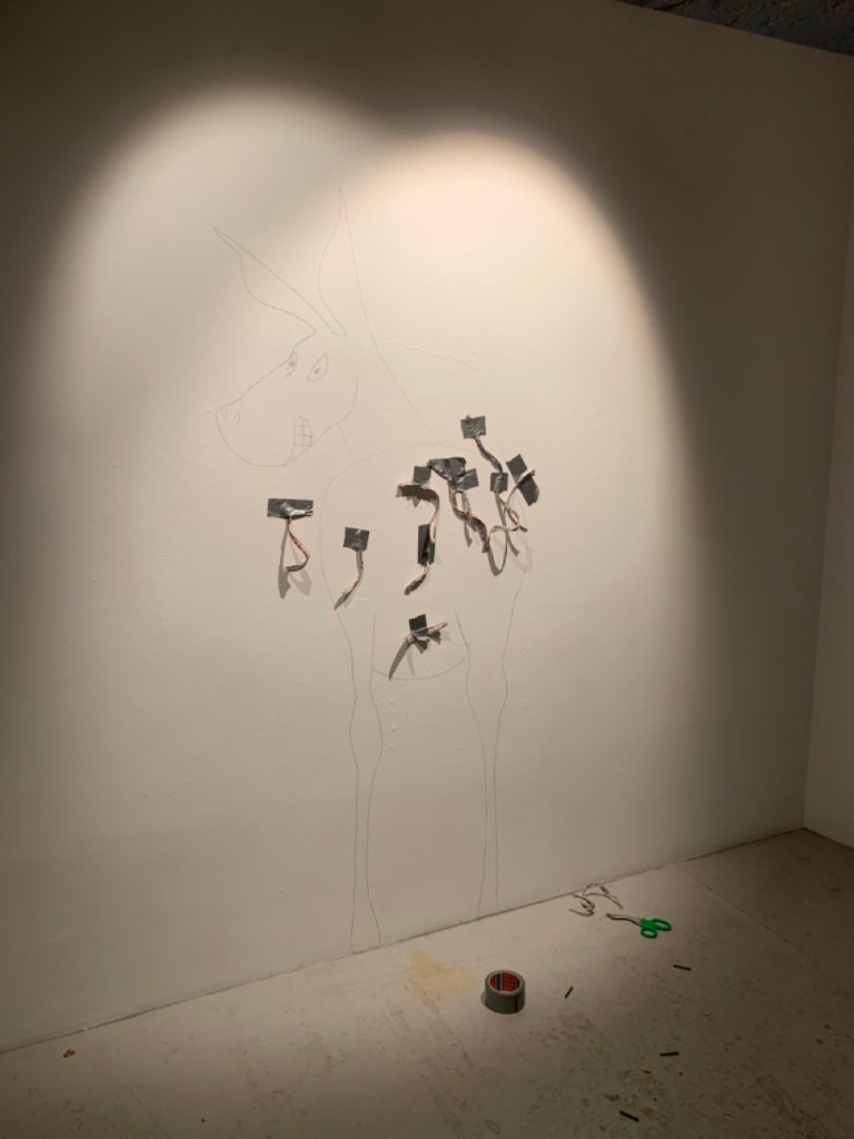 For this exhibition, I took the liberty of showing several works in progress. The ideas behind them revolve around my study of stupidity and my search for methods and aesthetics that use iconography commonly associated with foolish characters drawn from public and widely accessible sources. From there, I aim to distill these references down to their essential characteristics and build new imagery from them.